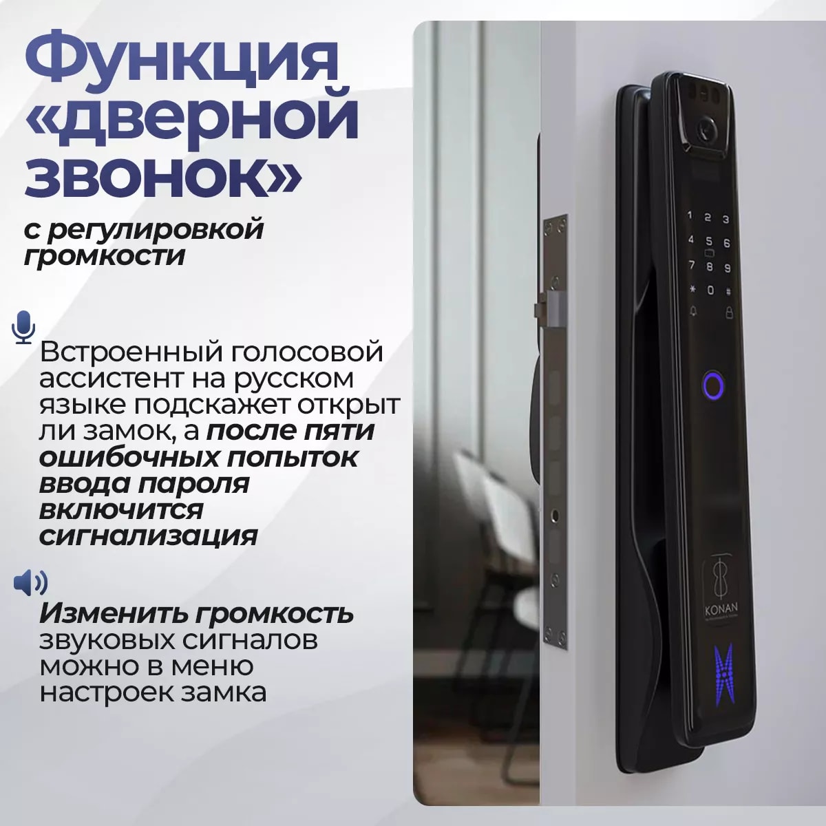 Face ID - Распознавание лица с помощью камеры позволяет разблокировать дверной замок просто подойдя к двери.